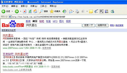 網(wǎng)民雷達(dá)被迫成為百度競(jìng)價(jià)排名的用戶,繳納了3000元費(fèi)用。但是,不少反映網(wǎng)民雷達(dá)核心產(chǎn)品的關(guān)鍵詞卻被百度禁用。網(wǎng)民雷達(dá)退出競(jìng)價(jià)排名后,其在百度的網(wǎng)頁(yè)介紹內(nèi)容,變成了一大堆莫名其妙的新聞節(jié)選內(nèi)容,直到11月21日才更換成“思維互動(dòng)”等字樣。網(wǎng)民雷達(dá)表示,如果不是遇到業(yè)內(nèi)對(duì)百度競(jìng)價(jià)排名的抨擊,百度對(duì)網(wǎng)民雷達(dá)的“垃圾化”處理,還不知道要持續(xù)多久。