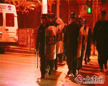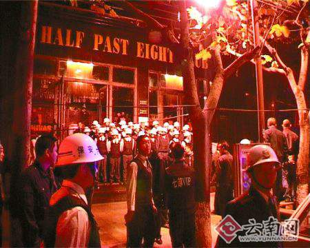 昨天凌晨,一伙不明身份的男子在昆明市寶善街“八點半”酒吧門口聚集許久后,和從酒吧內(nèi)沖出的另一伙人發(fā)生沖突,現(xiàn)場一度十分混亂。昆明市公安局緊急出動百余警力,短時間內(nèi)平息了此次群毆,同時帶回15人進行調查。