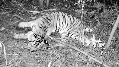 9月8日上午,黑龍江省東方紅林業(yè)局居民到東林林場撿山核桃,在位于林場1林班的地方發(fā)現(xiàn)一具東北虎尸體。接到報案,林區(qū)公安局立即趕赴現(xiàn)場。經(jīng)勘查發(fā)現(xiàn),被害的老虎是一只野生成年雌虎,身長1.55米,加上尾部長2.38米,肩高0.54米,體重97公斤。在它前進的方向只發(fā)現(xiàn)了野豬的足跡,說明它在死前仍然在追野豬。地上的虎毛和虎爪的痕跡清晰可見,顯然它在死前經(jīng)過一陣掙扎。從勒在虎頸部的鋼絲套可以斷定,這個鋼絲套就是導(dǎo)致其死亡的直接原因。經(jīng)鑒定,死去的老虎屬東北虎亞種,系鋼絲套勒頸部窒息死亡。