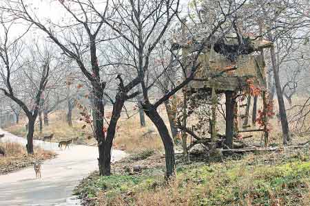 在野狼谷的中心區(qū),記者見到了此次為挑戰(zhàn)者搭建的“鳥巢”,說是房屋,就是一間用鋼管搭建、稻草圍苫而成的距地面3米多高的茅草棚。在野狼谷的3天時(shí)間里,挑戰(zhàn)者都要在這個(gè)“家”中度過。