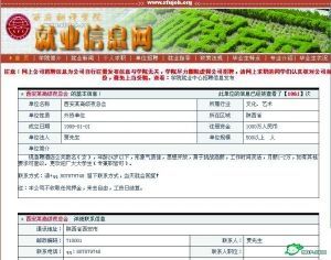 發(fā)帖者還給出了該網頁的鏈接地址,不過,昨日筆者點擊該網址驗證的時候,卻顯示“該用戶不存在或已被刪除”。不過登陸“XX翻譯學院就業(yè)信息網”,在它的“單位招聘”版塊上,仍然可以看到“單位名稱:西安某高級夜總會;招聘職位:酒店/餐飲;發(fā)布時間:2008-11-30”等信息。
