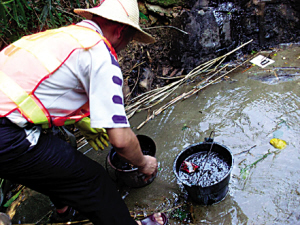 11月30日20時41分,深汕西路政部門接到惠州交警支隊高速公路一大隊信息,在深汕高速公路西行K338+800m處有兩輛油罐車排放液體污染物。路政人員隨即趕到現場。當時,嫌疑人王會增、王增國等四人正向附近河道排放污物。路政人員立即通知惠陽區(qū)公安部門和惠陽區(qū)環(huán)保局。隨后,王會增等四人被民警帶走,暫扣作案車輛。目前,案件仍在調查當中。