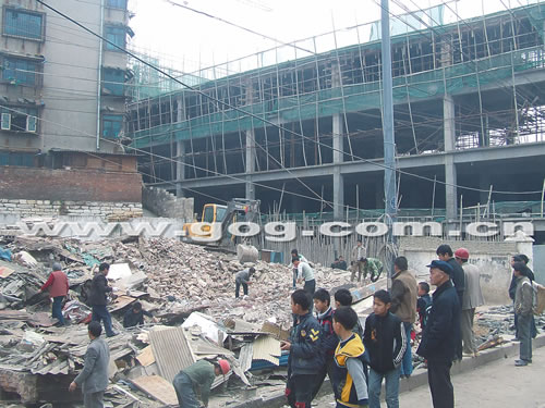 在多次協(xié)商無果的情況下,省經(jīng)濟(jì)適用住房建設(shè)發(fā)展中心向有關(guān)部門申請(qǐng)裁決。知情人稱,省經(jīng)濟(jì)適用住房建設(shè)發(fā)展中心的申請(qǐng)裁決獲得批準(zhǔn),昨日一大早,有關(guān)部門采取強(qiáng)拆的手段,最終將這個(gè)“貴陽最牛釘子戶”拔掉了。昨日上午,記者趕到現(xiàn)場(chǎng)時(shí),發(fā)現(xiàn)現(xiàn)場(chǎng)已被拆成一片廢墟,工作人員正在清理現(xiàn)場(chǎng)。