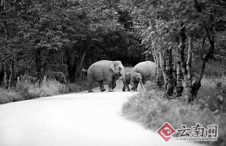 象群大搖大擺過(guò)馬路