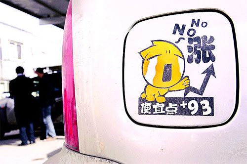 近來(lái),受經(jīng)濟(jì)危機(jī)影響,國(guó)際油價(jià)一路走低,但國(guó)內(nèi)油價(jià)卻居高不下。對(duì)此,很多車主都很無(wú)奈。貼上這頗具諷刺意味的車貼,可以在每次加油時(shí)都小小地抗議一下。(來(lái)源:華商報(bào))