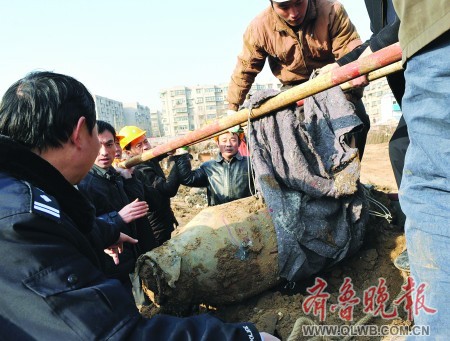 聽說挖掘機(jī)刨出個(gè)“煤氣罐”,12月13日晚11點(diǎn),濟(jì)南濟(jì)安街附近一建筑工地上的張師傅跑去看熱鬧。這“煤氣罐”挺怪:兩頭尖,中間胖。有人猜測(cè):“不會(huì)是炸彈吧!”民警趕來查看后,現(xiàn)場(chǎng)豎起牌子:“危險(xiǎn)!”