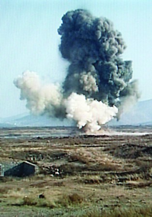 下午1點(diǎn),排爆人員架設(shè)通電導(dǎo)線,在彈體周圍放置肥皂塊大小的TNT炸藥,每塊200克,用了50塊。