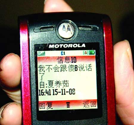 打工妹史小霞和夏養(yǎng)茹互罵的短信 記者李華攝