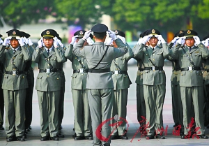 “一、二、三、四”,番禺廣場上,一個個城管執(zhí)法隊員精神抖擻,邁著整齊的步伐從主席臺前通過。昨日上午,番禺城管綜合執(zhí)法分局19個中隊、600多名城管隊員在番禺廣場舉行“新城管、新形象——隊列匯操”活動。這是廣州城管部門首次舉行大型的“閱兵”儀式。