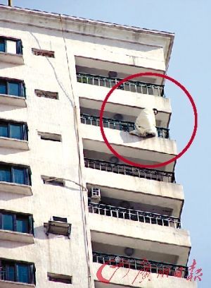 “5時16分我們接到報警,5分鐘后我們趕到現(xiàn)場時,他已經(jīng)爬上去了。”常平消防中隊的救援戰(zhàn)士介紹說,他們趕到現(xiàn)場時該男子的身體已經(jīng)站在了陽臺外面,他用雙手抓著陽臺的欄桿,身上裹著一床白色的被子,身體還不停地?fù)u擺。