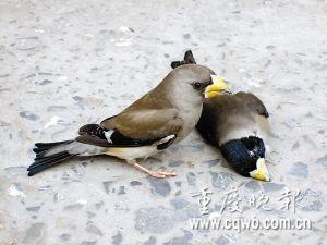 重慶一對癡情鳥兒,雄鳥死亡,雌鳥冒死守護在“愛人”身邊數(shù)小時,直到雙雙被檢疫人員帶走!八孟褚褌牡萌f念俱灰,在上百圍觀者注視下,依然守候著,仿佛與世隔絕。”雖然事隔3月,但這情景依然定格在圍觀者腦海里,揮之不去。