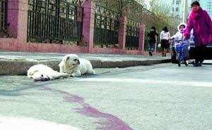 同伴遇車禍,先是在滾滾車流中舍命將其拖至路邊,然后伏在其身邊守望,親吻,試圖喚醒遇難的同伴……這一幕的主角不是人,而是一只普普通通的白色小京巴!3月1日下午1時(shí)許,青島大堯一路與逍遙二路路口上演了這感人至深的一幕,很多圍觀的市民唏噓不已,有的市民甚至當(dāng)場流下了同情的淚水。