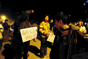 暫時無家可歸的居民都聚集在街邊觀望,夏茅村居民陳伯估計:“封鎖那么大一片地方,少說都有成千人回不了家!本用裥堑淖√巹偤迷诜怄i線上,他跟治保員央求了半天,也未進(jìn)得家門,“只是想進(jìn)去拿點東西都不行”。一名治保員告訴記者:“因為地陷嚴(yán)重,有幾座樓傾斜了,現(xiàn)在靠近很危險,另外我們也怕有人借機行竊!