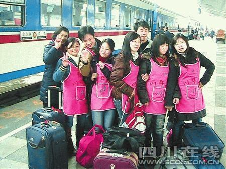 隨著春節(jié)臨近,北京家政市場(chǎng)保姆荒的情況也越來(lái)越嚴(yán)重。昨日上午11時(shí)許,川妹子家政公司組織的15名進(jìn)京家政人員登上了開往北京的列車。保姆中有8人是大學(xué)生,其中7人是家政專業(yè)的大學(xué)畢業(yè)生,1人是因新近公司倒閉而失業(yè)的白領(lǐng)。明日,他們將走進(jìn)北京市民的家庭,從事高端家政服務(wù),年薪在2萬(wàn)元左右。