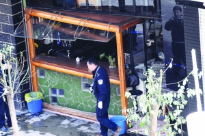 “我當(dāng)時聽到‘砰’的一聲巨響,接著看到一些碎玻璃飛到了保安室的門口”,楊谷平趕緊跑出去查看,看到咖啡吧后面右側(cè)的衛(wèi)生間窗戶冒出一股濃煙,但是沒有明火,而左側(cè)的廚房玻璃則完好無損。楊谷平立即與小區(qū)負(fù)責(zé)修理的物管一起,從前門沖進(jìn)咖啡吧,進(jìn)門看到屋里已經(jīng)濃煙彌漫,收銀臺的服務(wù)員正在驚慌地?fù)艽驁?bào)警電話,酒吧的負(fù)責(zé)人則束手無策地站在濃煙外圍。