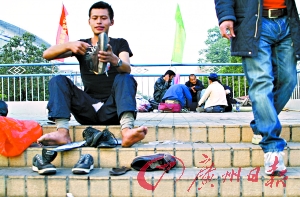 最近,“軍心”渙散了。老頭和小軍準備到海南闖一闖,小路也有心同行。李練因為和老頭鬧了點矛盾,被剝奪了入伙南下的資格。其實李練也不想走。他想在春節(jié)期間攢下自己的“第一桶金”,然后擺個走鬼檔做點小生意。除了解決吃飯問題,還能有個床位,睡個安穩(wěn)覺。(文/記者石善偉、何有貴 圖/實習(xí)生劉雷 記者喬軍偉)