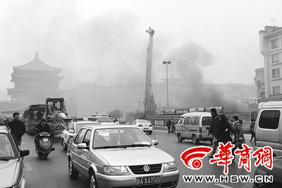 出事地點位于地鐵二號線鐘樓站右線隧道北端。上午10時20分許,記者趕到現(xiàn)場,看到坑道內(nèi)不斷向外冒黑煙,且越來越濃,濃煙順著隧道從20米外的另一出口排出,很快,鐘樓便籠罩在濃煙中,行人紛紛掩鼻而過。數(shù)名身著防護服背著壓縮空氣的消防戰(zhàn)士正在坑道作業(yè),一名消防戰(zhàn)士說,因為著火處有障礙物且濃煙影響視線,所以只能在外圍滅火。11時許,煙霧明顯減少。