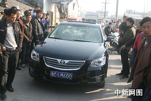 一場(chǎng)交通事故引發(fā)人車大戰(zhàn) 交警正做調(diào)查(圖)
