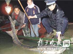 4日晚6時許,長江揚州邗江區(qū)頭橋段驚現(xiàn)“龐然大物”,一條重達250斤的野生中華鱘鉆進當?shù)貪O民的魚網(wǎng),此后3個強壯漁民花了近一小時的時間將中華鱘拖至岸邊后,立即向漁政部門報告。揚州市邗江區(qū)漁政部門趕到后,檢查發(fā)現(xiàn)中華鱘沒有受傷,隨后連夜將其放回長江。當?shù)貪O政人員稱,這么大的野生中華鱘已10年未遇。昨日省有關方面也表示,如此“個頭”在全省乃至全國都屬罕見。