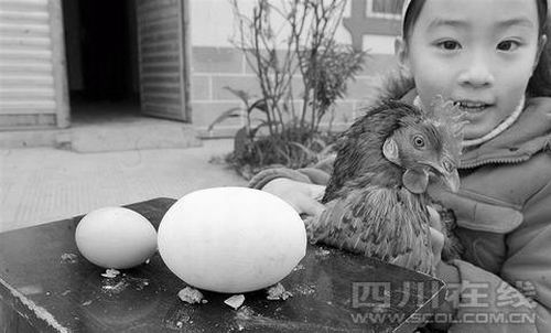 對(duì)此,四川農(nóng)業(yè)大學(xué)動(dòng)物科技學(xué)院教授劉益平說,“一般這樣大的異形蛋是在雞蛋已成型后被輸回去的,很可能是蛋包蛋!