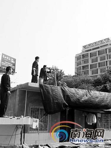 記者看見,兩名民警挎著狙擊槍走上山腳下一間民房房頂,這里能看到山坡上的水牛,選好最佳射擊位置后,一名民警把狙擊槍架在木板上準(zhǔn)備射擊,這樣能增強射擊精確度。