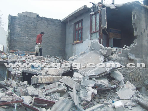 昨日下午,記者接到讀者報(bào)料后,再次來(lái)到貴陽(yáng)青山路的拆遷現(xiàn)場(chǎng),看到一片拆遷廢墟上,幾棟民房均已遭到不同程度的破壞。王雪娜家房屋已經(jīng)被拆掉了大半,其母親正在廢墟堆里刨一些物品!凹依铿F(xiàn)金和攝像機(jī)等貴重物品都被搜走了,冰箱和彩電也被砸壞了……”王雪娜說(shuō),當(dāng)時(shí)在場(chǎng)的不明身份男子至少有200多人,如果不是警方趕到并鳴槍制止,或許她家的房子早就被完全拆掉了。另一拆遷戶也向記者證實(shí),當(dāng)時(shí)警方確實(shí)開(kāi)槍制止了。