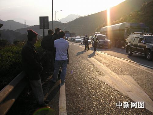 當(dāng)日下午16時(shí)30分,位于京珠高速公路廣東韶關(guān)段北行K51公里處,18名農(nóng)民工集體走上高速路面,導(dǎo)致北行車流被堵。京珠高速交警大隊(duì)接報(bào)后,立即將情況上報(bào)韶關(guān)市公安局和交警支隊(duì),同時(shí)派出警員緊急趕赴現(xiàn)場(chǎng)處置。