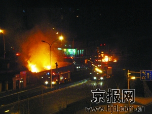 今天凌晨5時許,(北京市)通州區(qū)楊莊北方紅旗機電市場路口一煙花爆竹銷售點發(fā)生火災(zāi),大火將現(xiàn)場所有鞭炮以及攤主的一輛銀白色面包車全部燒毀,燃燒的鞭炮還將30米開外馬路對過的草堆點燃,60名消防員撲救了近一個小時才將大火撲滅,現(xiàn)場未發(fā)現(xiàn)人員傷亡。