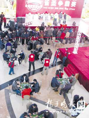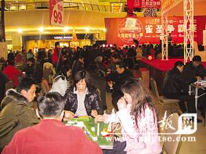 從大年初一到初三,揚州新城西區(qū)一家大型銷售、娛樂廣場“京華城”內分外熱鬧,這里舉行了一場名為“2009雀圣爭霸賽”的大型麻將比賽。數千平方米的大廳內,共擺下50張麻將桌,過年3天,天天人聲鼎沸。麻將這一“格調”似乎不太高的娛樂活動能上升到“大賽”的層次,且辦出如此規(guī)模,在歷史文化名城揚州還是“破天荒”頭一回,在全省乃至全國也屬罕見。昨天晚上8:20,經過3天激烈角逐,麻將爭霸賽“雀圣”終于產生,一位來自揚州郊區(qū)的“老太霸主”在眾人的簇擁中,滿臉喜氣領走價值近5000元的獎品。