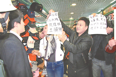 據(jù)了解,上述的一幕已經(jīng)是2月以來,因封攤導(dǎo)致的秀水街市場內(nèi)部的第二次嚴(yán)重沖突。而第一批被封攤的7家商戶目前已經(jīng)以用益物權(quán)糾紛為由,將秀水街市場有限公司和英特普羅知識產(chǎn)權(quán)代理有限公司的董事長胡棋一并告上了法院。