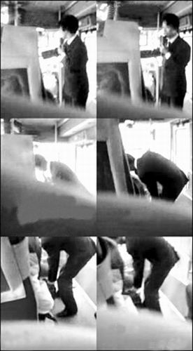 在討錢的過(guò)程中,公交車每到一站,西裝男就用他蹩腳的普通話代替售票員報(bào)站。有一些女乘客受不了他的語(yǔ)言,都偷偷地笑了起來(lái)。