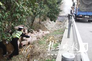 2月12日傍晚,南京浦口交巡警寧合高速中隊(duì)的值班電話響個(gè)不停!澳銈兛靵(lái),有好多豬在路上超速奔跑……”一個(gè)過(guò)境車(chē)司機(jī)打來(lái)的報(bào)警電話詼諧幽默。民警立刻行動(dòng)起來(lái)。