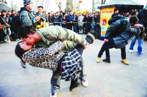 身邊的對手相繼落地,4號先生還在堅持。當主持人宣布他是唯一還沒倒下的人時,他仍鉚著勁站了一會兒!八娴耐Τ恋!狈畔屡,4號先生重重地喘了口氣,女友則給了他一個大大的擁抱。這對4號情侶最終贏得了一部摩托羅拉手機!笆謾C送給女朋友,當做情人節(jié)禮物!4號先生摟著女友,大聲地宣布。(記者王卡拉 實習生魏楠)