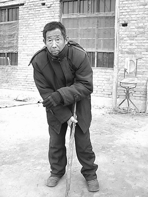 不顧家人的多次勸阻,65歲的吳述勛拄著棍、拖著傷腿吃力地站在自家的屋門前。聽(tīng)說(shuō)記者要來(lái)采訪,他堅(jiān)持在屋外等候。這是記者前幾天到原陽(yáng)縣福寧集鄉(xiāng)東程寨村采訪時(shí)見(jiàn)到的情景。