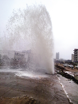 “先是聽到吱吱吱地響,馬上要到10點(diǎn)時,突然‘砰’的一聲后,一股水柱就沖上天了!60多歲的黃婆婆當(dāng)時在現(xiàn)場,據(jù)她介紹,沖天水柱有人的大腿粗細(xì),“起碼有十多米高!