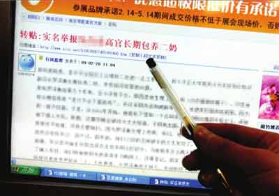 昨天11點(diǎn)03分,西祠網(wǎng)站“記者的家”論壇中,網(wǎng)民“行風(fēng)監(jiān)督”提交了一篇名為《轉(zhuǎn)帖:實(shí)名舉報(bào)高官長(zhǎng)期包養(yǎng)二奶》的帖子。