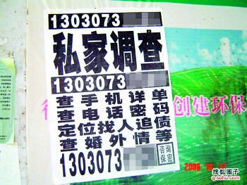 在我所住的小區(qū)里,常常能看到張貼的“私家偵探”廣告。出差到其他城市,也能看到相類似的情形!八郊覀商健睂υS多人來說,早已經(jīng)不是什么新鮮事。