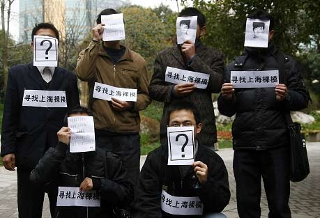 昨天上午10時許,在華山路、延安中路路口附近的天橋上,數(shù)名男子身上貼著“尋找上海裸模”的字條,公開招聘模特,并開出每小時800元到1000元的價格,希望模特在展會上能大尺度表演。