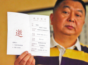 為父親慶祝80大壽,薛方全在請(qǐng)?zhí)凶⒚鳎翰皇杖魏味Y品禮金,交通工具自備。