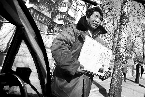 昨天上午9時許,四路通路口,一名裹著軍大衣的男子,在晨風(fēng)中舉著一塊貼著尋人啟事的木板,站在路邊不斷向過往行人詢問:“這是我走丟的老婆,有沒有見到過!蹦景迳腺N著兩張紙,一張是尋人啟事,附有照片,另一張寫著“尋妻,懸賞6000元”。