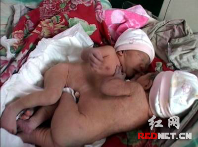 3月16日,婁底市新化縣中醫(yī)院降生了該市首例連體嬰兒。這對(duì)連體嬰兒都是女嬰,出生時(shí)體重4.8公斤,健康狀況良好。