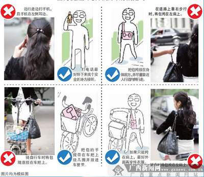 外出放挎包有講究 邊走邊打手機(jī)危險