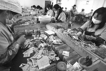 “這些全是假幣!”昨天,在鄭州市公交總公司點鈔大廳,一個個白色布袋堆放在墻角,每個布袋上都標(biāo)有“壹圓”字樣。一位趙姓工作人員說,每個布袋里都裝有2000個一元假硬幣,重10余公斤,一共288袋。記者注意到,在堆放的假硬幣上面,擺放的塑料筐里裝著面額不等的“鈔票”,“它們也都是假幣”。