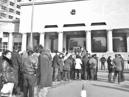 今天(24日),哈爾濱市中級(jí)人民法院不同以往。南、西、北3個(gè)門均戒備森嚴(yán)。南門人頭攢動(dòng),手拿旁聽證的人們先檢票通過院門,再經(jīng)安檢進(jìn)樓門,再經(jīng)驗(yàn)票進(jìn)入法庭。西門人行稀少,人大代表們不經(jīng)安檢進(jìn)入法庭。北門3人通行,8時(shí)50分,齊新、劉力男、楊森3名被告人從這里被帶入法庭。