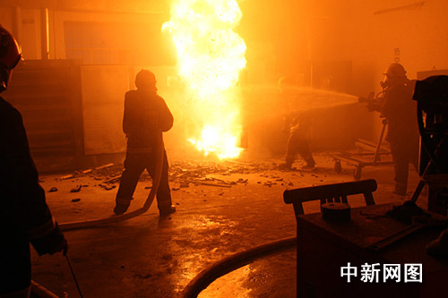 幾分鐘后,指揮員確認粉塵密度已經(jīng)降到爆炸點以下,果斷命令戰(zhàn)斗班長用撓鉤將烘箱門緩緩打開。由于粉塵和空氣混合,在高溫的作用下從烘箱內(nèi)爆出一團團火焰,形狀似蘑菇云將廠房屋頂擊穿,在廠房頂部留下一個20多平米的大洞,一名戰(zhàn)士被烘燃引起的沖擊波擊倒在地,廠房內(nèi)一片狼藉。