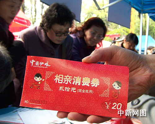 記者看到,紅彤彤的相親消費(fèi)券頗是喜慶,券面上兩個(gè)身著唐裝的童男童女向單身者傳達(dá)出了愛的祝福。