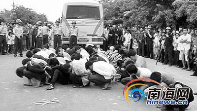 兩名沙場(chǎng)老板因經(jīng)營(yíng)利益問(wèn)題產(chǎn)生糾紛,雙方各組織幾十人乘3輛大卡車(chē)持長(zhǎng)粉槍、長(zhǎng)勾刀等兇器欲進(jìn)行火拼。臨高警方得到消息后迅速組織160警力、20余輛警車(chē)圍追堵截,成功制止了一起聚眾斗毆事件,避免了流血事件發(fā)生。此次行動(dòng),臨高警方共查扣違法車(chē)輛6部,抓獲涉嫌持械斗毆嫌疑人58名。其中43人被刑拘、12人被行政拘留、3人待查。