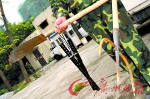 當(dāng)時(shí)親歷的保安班長(zhǎng)吳文強(qiáng)告訴記者:“他們來(lái)了有四五十人,有說(shuō)白話的,也有說(shuō)潮汕話的,手頭上都全部有武器!眳俏膹(qiáng)說(shuō):“帶頭的幾個(gè)有槍,我起碼看到3把長(zhǎng)槍兩把短槍,其他人也帶有一些鐵魚(yú)叉、關(guān)公刀、鐵警棍、水喉管等武器!眳俏膹(qiáng)事后仍然十分害怕:“一副山賊進(jìn)村搶劫的樣子!