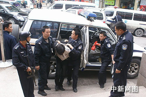 當(dāng)樂昌警車追至湖南郴州良田地界時(shí),發(fā)現(xiàn)前方有一臺大巴很可能就是疑兇搭乘的車輛,警員果斷將該大巴車攔停,迅速表明身份上車查驗(yàn),同時(shí)由身穿避彈衣、手持沖鋒槍的警員在大巴車駕駛室位置警戒。兩名警員按從車尾到車頭的順序?qū)γ棵丝椭鹨辉儾,發(fā)現(xiàn)車尾座上一名年輕男子正是嫌疑犯李某,于是一舉將李某擒下。