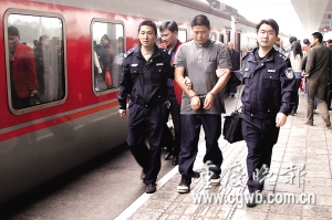 警方將劉恒友押解回渝 記者 朱昕勤 攝